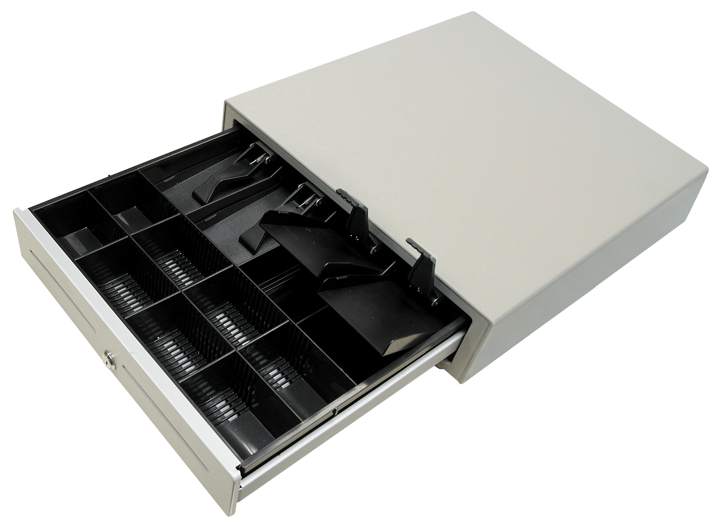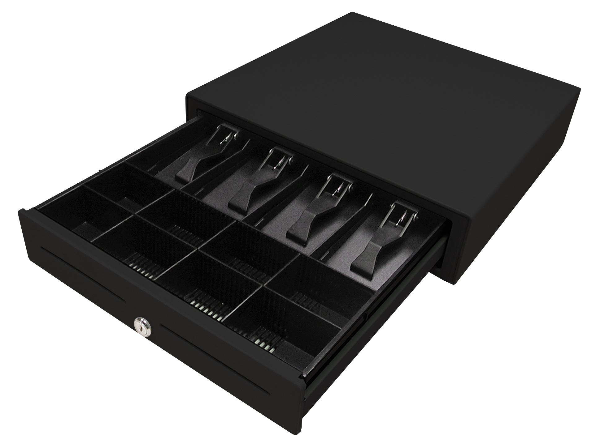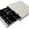 The 3S 430 is a classical POS cash drawer with a removable spacer system for 8 types of notes and 8 types of coins. Two slots on the front side are used for receipts, cheques and removable inserts.